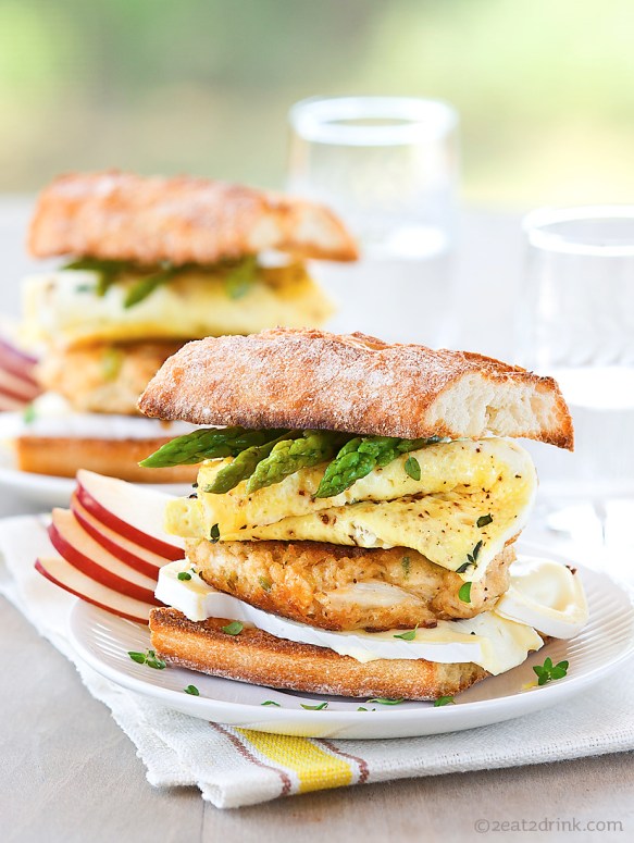 Ok….so it’s not Wheaties. It’s far better! But given the opening ceremonies this evening, I thought I should do a post somehow relate to the Olympics. So….it was our breakfast and we felt like champions afterward. Just like Bruce Jenner did after eating his bowl of Wheaties and winning his Olympic medals. It works for me. Thus the brie, asparagus, crab cake, egg white, ciabatta baguette breakfast sandwich!