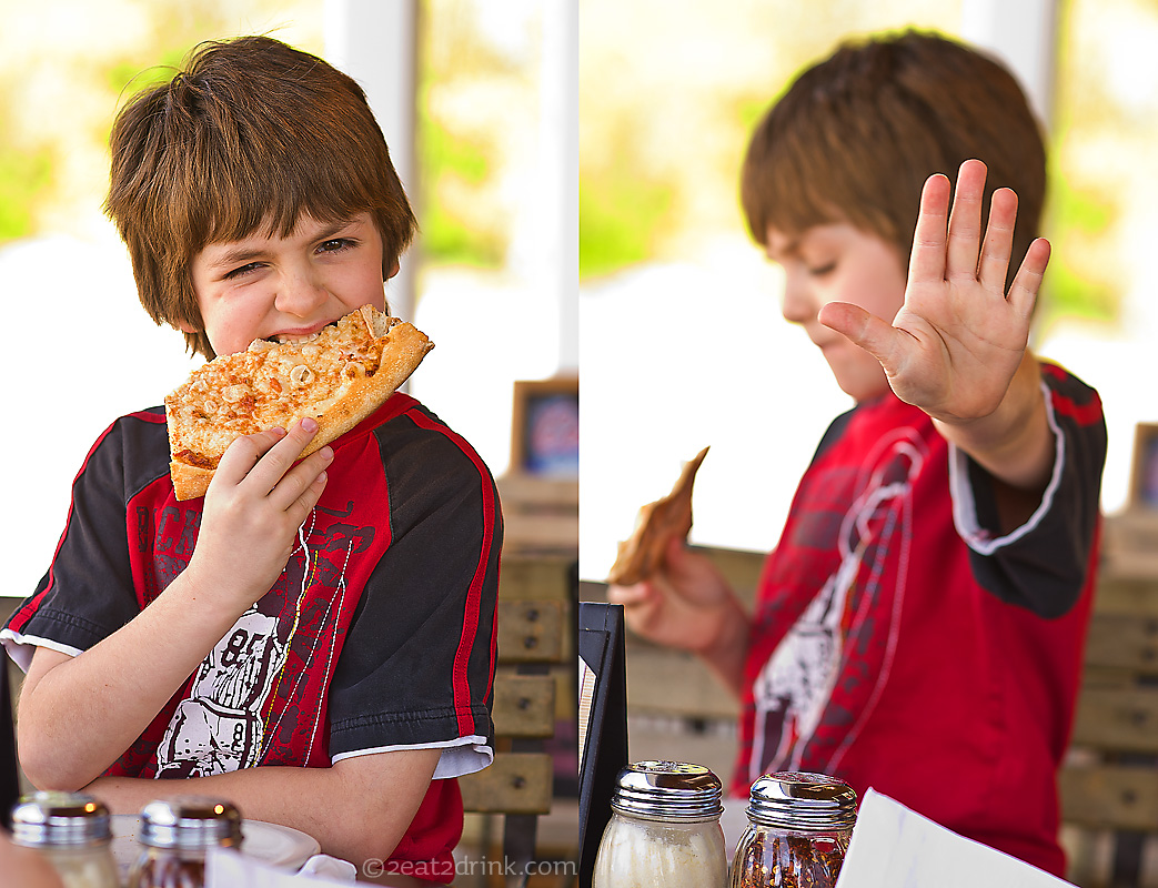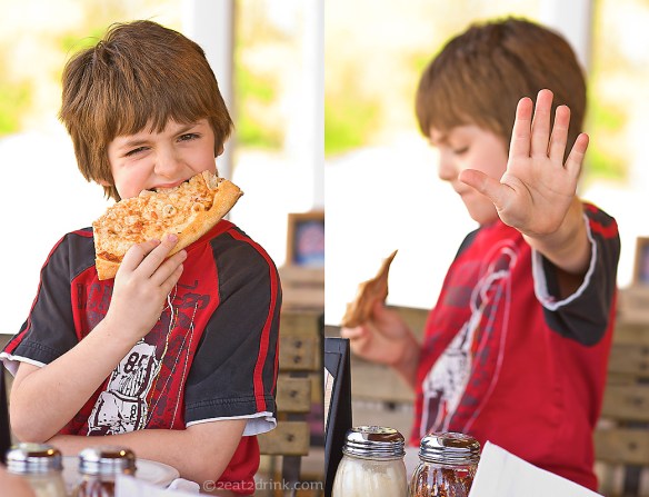 Okay, so this pizza wasn’t cooked in a wood-fired oven, but was it ever good! The cooking method here is to use a brick-lined gas oven that runs at about 700 degrees. Yes, 700 degrees. That’s hot, and the nicely charred crust is evidence. This crust was a bit denser than at the other two places. It was crisp on the outside and super chewy on the inside, and we loved it!