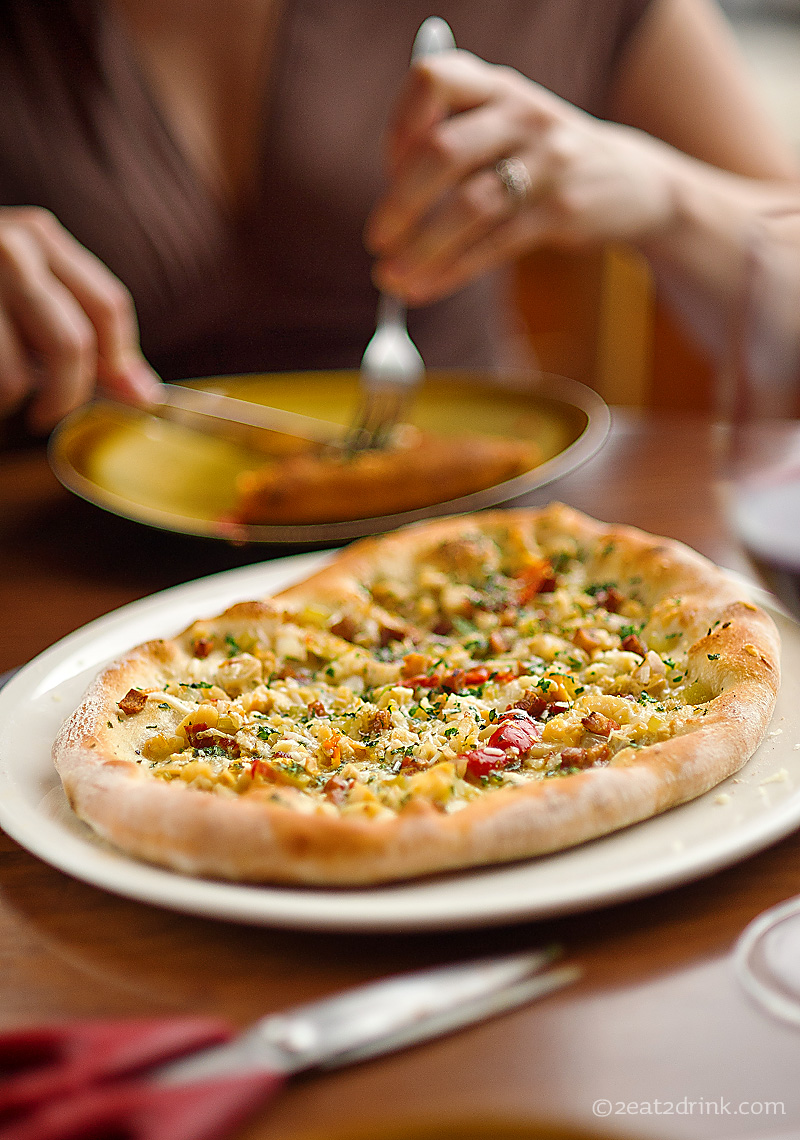 Our chef’s choice pizza was the vongole. Its toppings consisted of clams (yes, clams!), pancetta, parsley, chili peppers, and garlic oil. This pizza had a really nice heat to it. The toppings made for a delightfully unusual flavor combination.