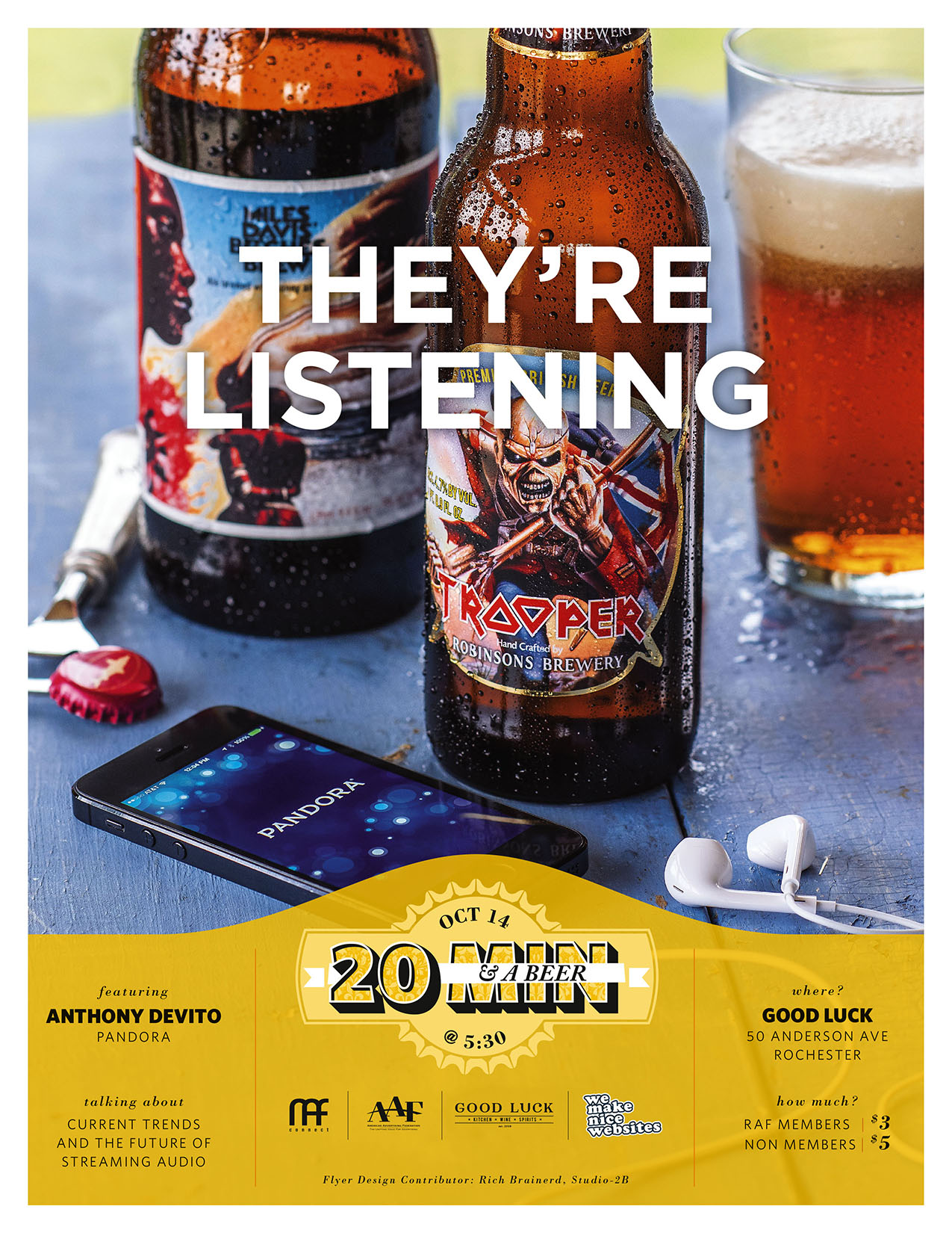I went to the beer store. While this isn’t necessarily an odd occurrence, my mission was unusual. I volunteered to shoot an image for this month’s RAF event, 20 Minutes and a Beer. (Join the Facebook event!) Anthony DeVito from Pandora will be speaking about the current and future state of streaming audio. Thus my mission was to find some beers that relate to music! Beer and music come in hugely varying options, so I find it fitting that the two I ended up choosing are so different in their inspiration and their taste/style.