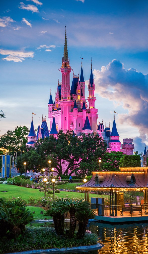 _DSC3365-cinderella’s castle and swan boat dock Published March 17, 2015 at 850 × 1460 in A Guinness pint and a wee bit o’ Disney. Sunset in the Magic Kingdom.