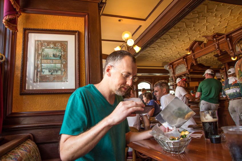 _DSC3537-rich in rose and crown Published March 17, 2015 at 1273 × 850 in A Guinness pint and a wee bit o’ Disney. Weston captured me grabbing a quick iPhone shot.