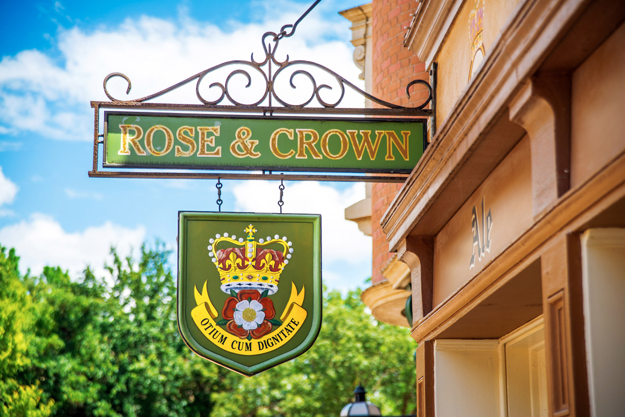 _DSC3540-rose and crown sign Published March 17, 2015 at 1273 × 850 in A Guinness pint and a wee bit o’ Disney. The Rose & Crown Pub.