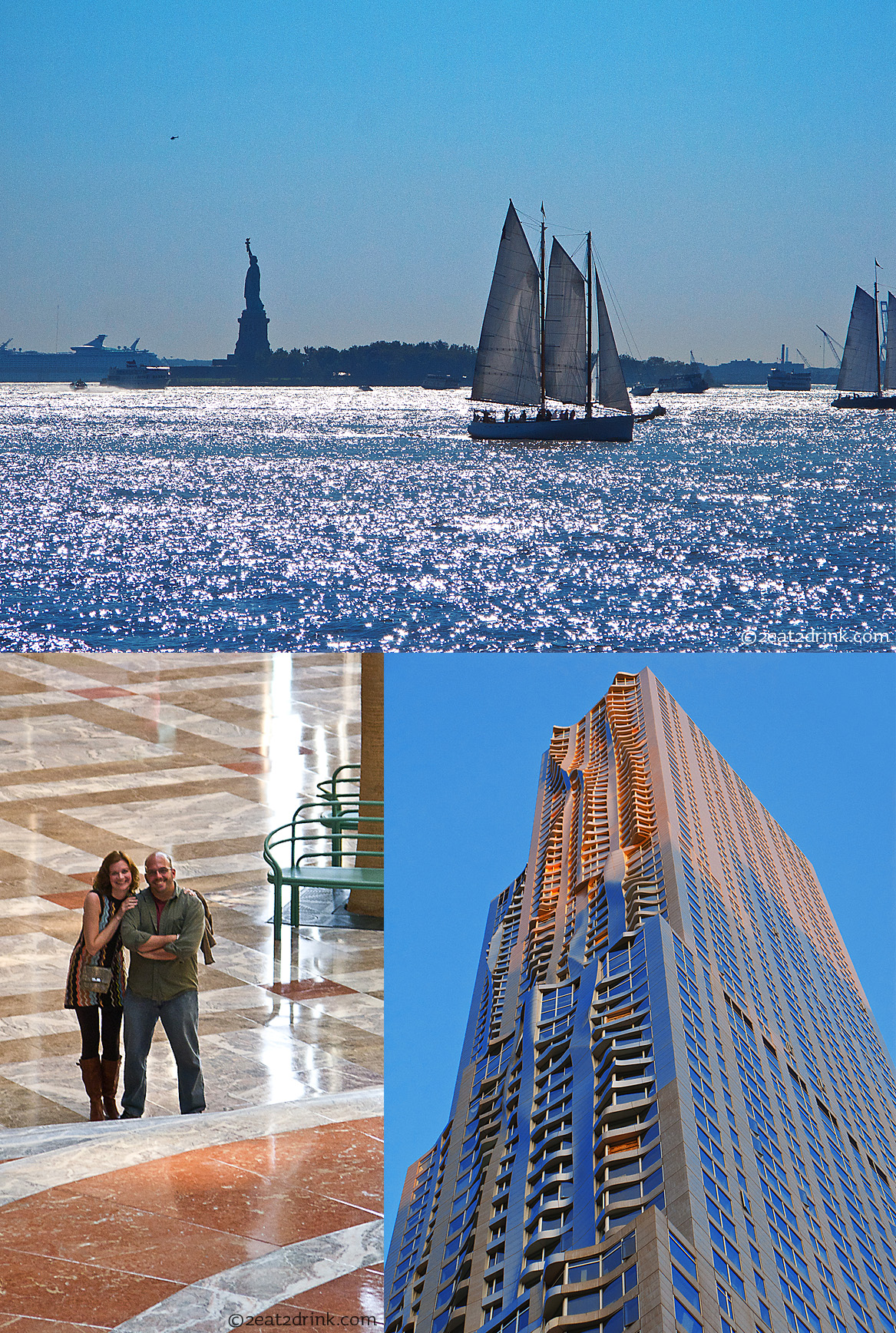 After spending some time strolling along the Esplanade – gazing out at the Statue of Liberty, the Hudson River, and the New Jersey skyline – we then wandered further, stumbling across the Frank Gehry-designed residential tower at 8 Spruce Street. This building’s amazing design was beautifully highlighted by the late-afternoon sun.