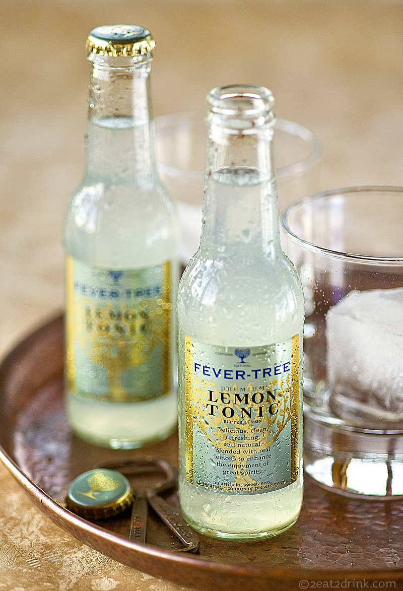 In this case, the wicked cool bottle of Fever-Tree Bitter Lemon premium tonic water inspired us. Made with spring water, cane sugar, lemon juice, and natural quinine, the beverage itself is as cool and fresh as its packaging.
