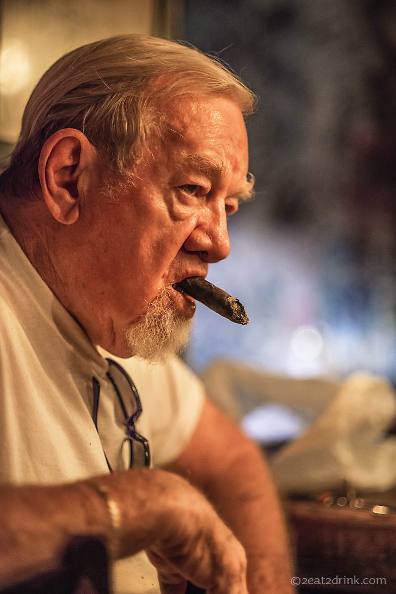 That long finish takes us away to El Batey. The most intimidating bar we’ve ever walked into, it is also one of the most friendly and interesting. Each visit has provided great conversation with the patrons and the bartenders, and endless visual appeal. The highlight of our most recent visit was a brief chat with the owner, David Jones. He is obviously a man who knows how to enjoy himself as he was surrounded by friends, drink, and a bag of cigars. I think this photo captured him perfectly as this is how he chose to sit when I asked to photograph him; elusive, gruff, intense and relaxed all at once.
