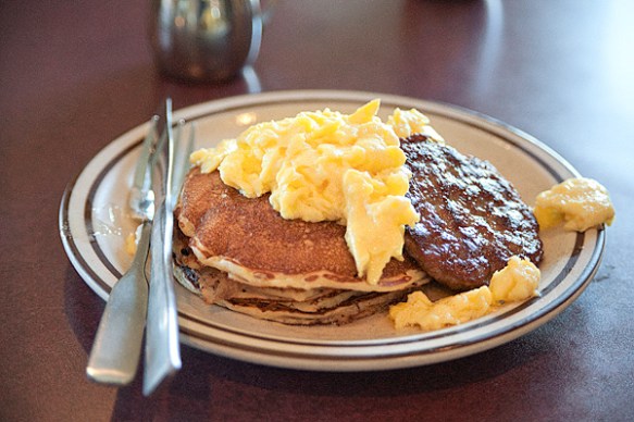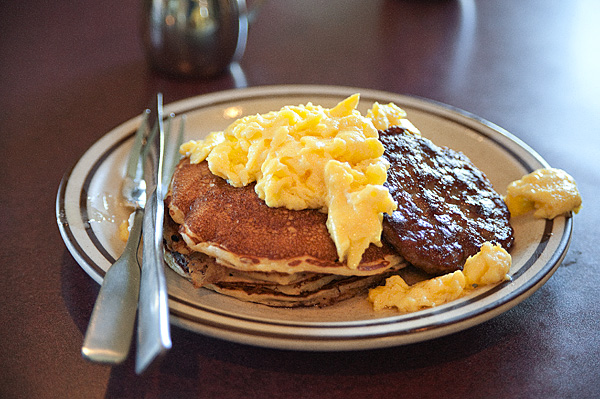Rich had the Build Your Own Hobbit Slam. He chose the pumpkin patch pancakes, seed cake French toast, Shire sausage, and eggs. He tried to order egg whites, but I told him a real Hobbit would go for sunny side up. Everything was super yummy, especially (in my opinion) the poppy seed French toast.