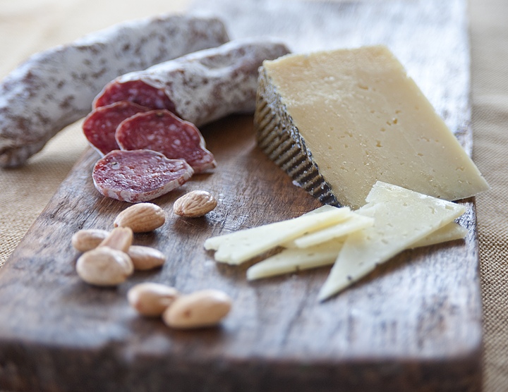 Since the nuts are from Spain, I suggest serving with a Spanish red. A deeper bodied wine is ok since the cheese has a nice, rich flavor. We chose a Bodegas Ondarre Rioja Reserva 2004. With a blend of 75% tempranillo, 15% mazuelo, and 10% garnacha, this wine was an excellent choice. We actually picked up a touch of vanilla in everything when we tasted all 3 together.